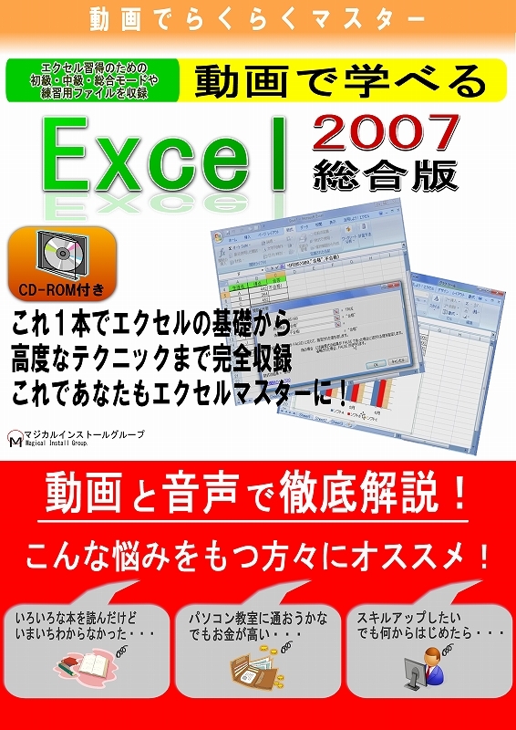 動画で学べる「Excel2007 総合版」は動画で解説しているExcelのファイルと同じデータを練習用データとして付属しています。